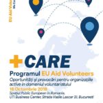 A fost prezentat și programul EU Aid Volunteers, un program de ajutor umanitar și voluntariat prin care UE se implică în zonele post – conflict sau post-dezastru din lumea întreagă, program în cadrul căruia Imago Mundi este partener în programul de asistență tehnică și parte a proiectului + Care, care urmărește creșterea numărului de organizații din Europa care aplică și obțin certificarea pentru a devein organizații de trimitere în cadrul inițiativei EU Aid Volunteers și se desfășoară în perioada februarie 2018 – ianuarie 2020.